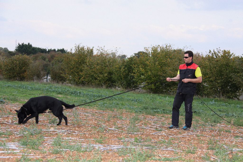 Chien très sociable, s'entraîne en Pistage FH, pratique également l'IGP niveau 2 ,le cani vtt et la natation.